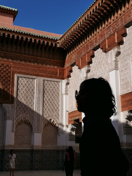 Their teachers #B and Chris explained...On Sunday morning we gained our first taste of the film festival, joining a conversation with the acclaimed actor Willem Defoe, who shared details of his cinematic journey, often working with the world's great auteurs, such as Lynch, Scorsese & Ferrer. After a quick bite, we snaked our way through the maze-like streets of the cities Medina, on route to the aesthetically sumptuous 16th century Ben Youssef Meddrasa, one of the cities architectural gems. On our return to the hotel for a well-deserved pit-stop, our cohort haggled with great success, humour and confidence, as they bought their way through Marrakech's famed souks like seasoned pros.